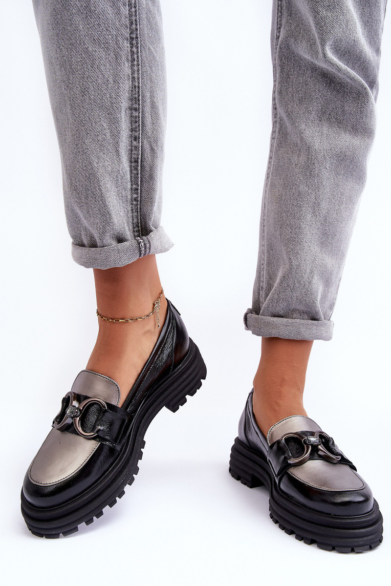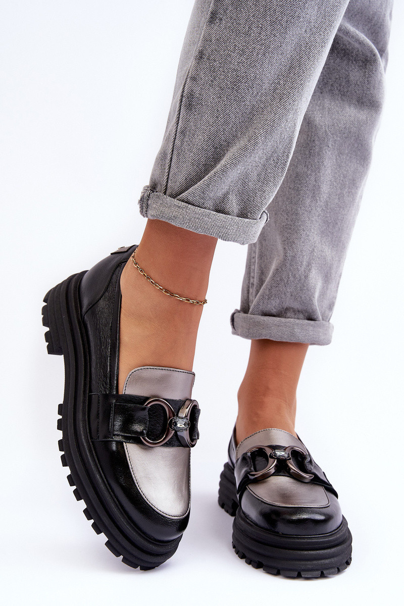 Dámské polobotky byly vyrobeny z přírodní kůže. Instalovány na masivní platformě a plochém podpatku. Měkká vložka z přírodní kůže zajistí pohodlí při používání. Klasický, nazouvací model. Špička v této obuvi je zpevněná. Na popruhu na přední straně je ozdoba z umělého materiálu. Tyto boty se budou hodit do mnoha stylů! Určitě si prohlédněte celou naši kolekci polobotek! Při výběru velikosti se řiďte tabulkou velikostí.