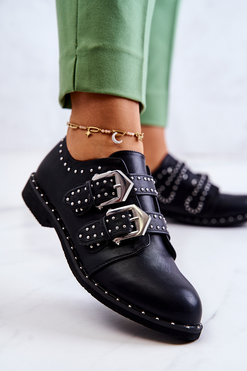 Jedinečné dámské boty s přezkami od LU BOO. Boty jsou vyrobeny z eko kůže. Mají cvočky v horní části svršku, podešve a na ramínkách. Model je nasazen na plochém podpatku z pryžového materiálu. Ramínka jsou nastavitelná, zapínají se na přezku. Nos je mírně protáhlý, mandlového tvaru. Stélka je vyrobena z eko kůže. Nezapomeňte si prohlédnout celou naši kolekci dámských bot! Při výběru velikosti se řiďte tabulkou velikostí.