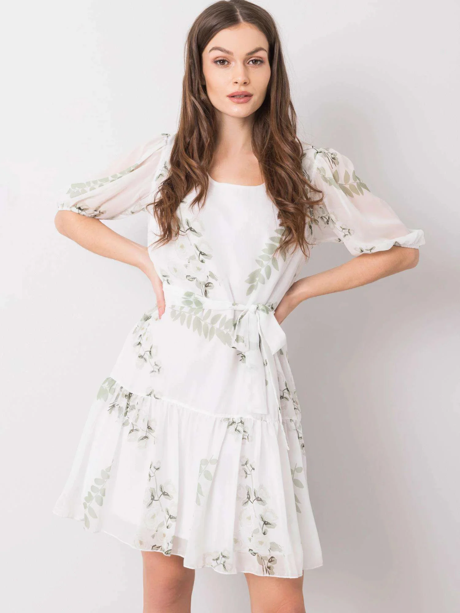 Produkt Dámské květinové šaty 508129 - FPrice prodáváme v těchto velikostech: L-40a barvách bílo-olivová2016102822400