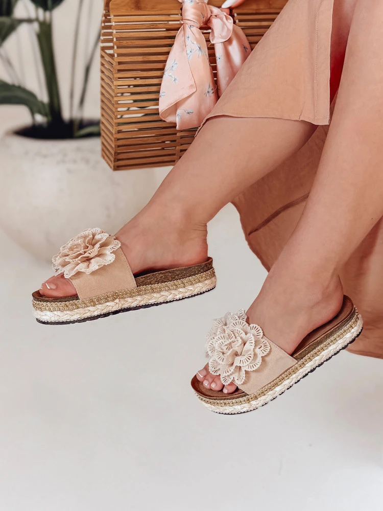 Dámské květinové žabky KWIATARIS beige FashionStreet ZY0912