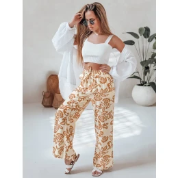 Dámské květované kalhoty s širokými nohavicemi LOVEGARDEN camel FashionStreet UY2657