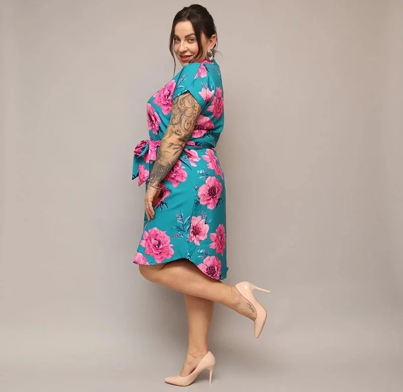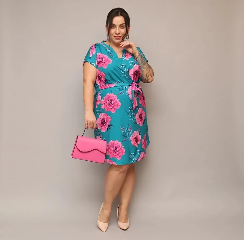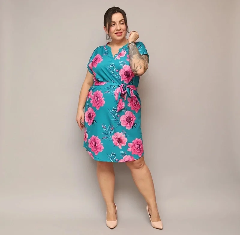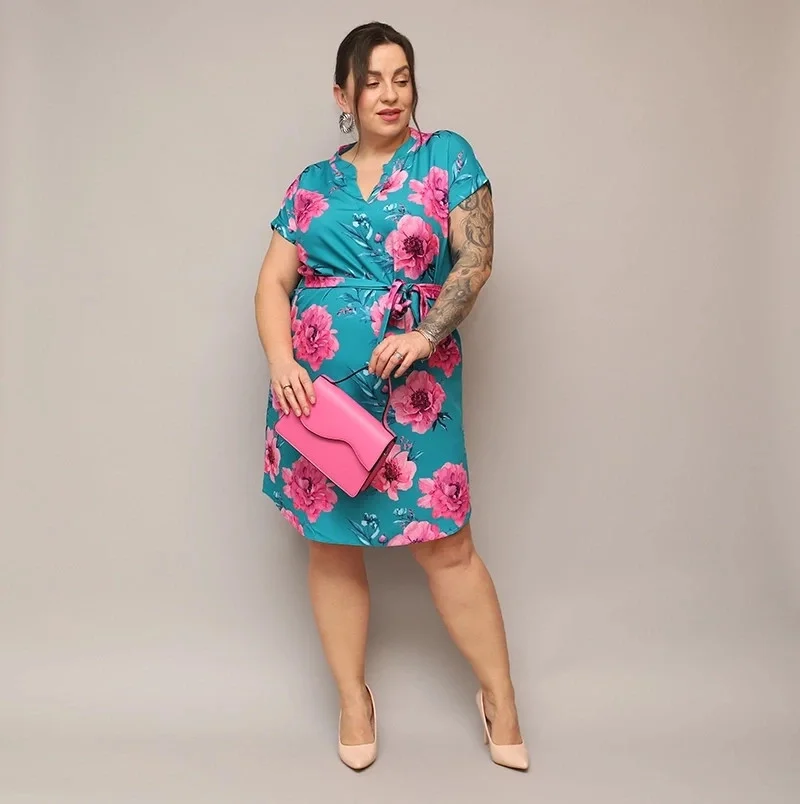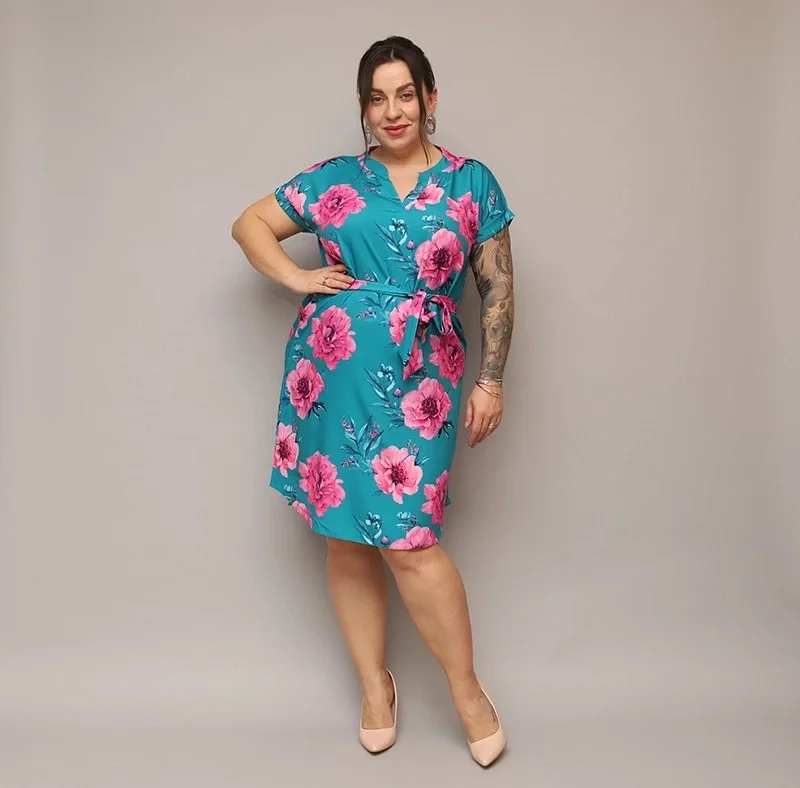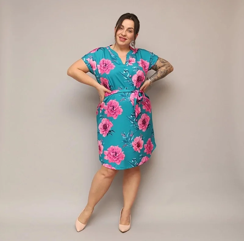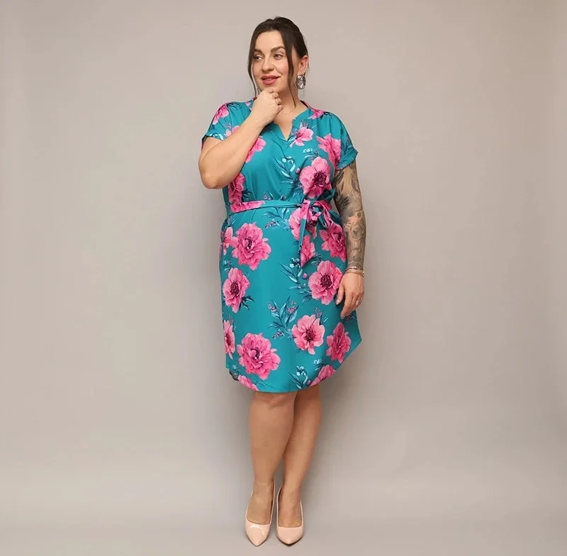 Přidání recenze k Dámské květované šaty v mořské barvě s páskem (744)