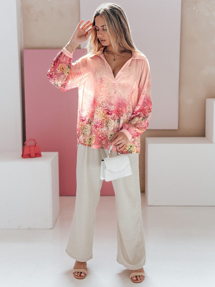 Dámské květované tričko oversize FLOWERS pink FashionStreet DY0470