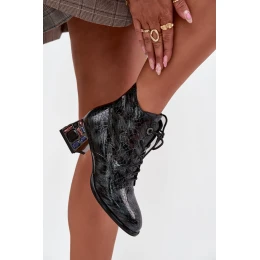 Dámské lakované boty Artiker – šedé, z přírodní kůže, na podpatku s krystalky
