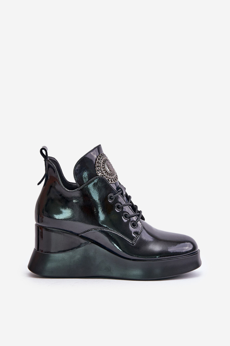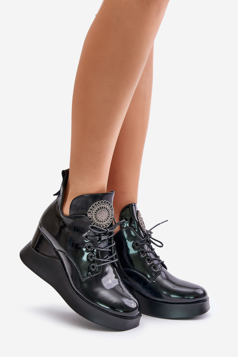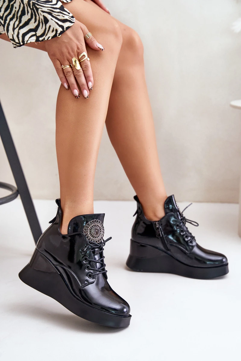 Dámské Lakované Boty Na Klínu Zateplené model 21672157 Černé - VINCEZA