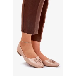 Dámské lakované elegantní baleríny s ozdobným detailem Vinceza – béžové