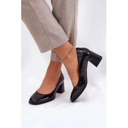 Dámské lakované kožené lodičky na podpatku Vinceza – černé