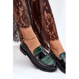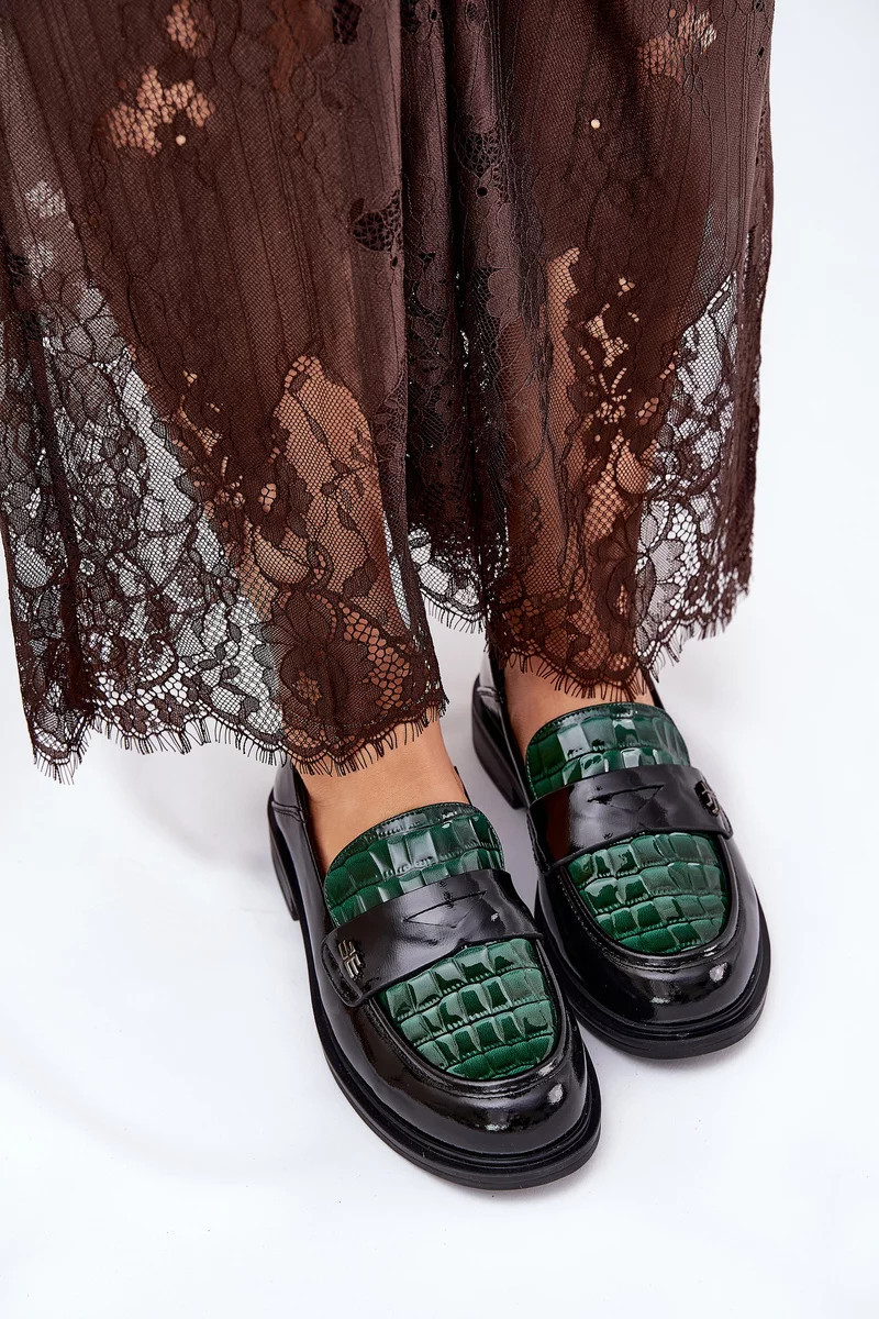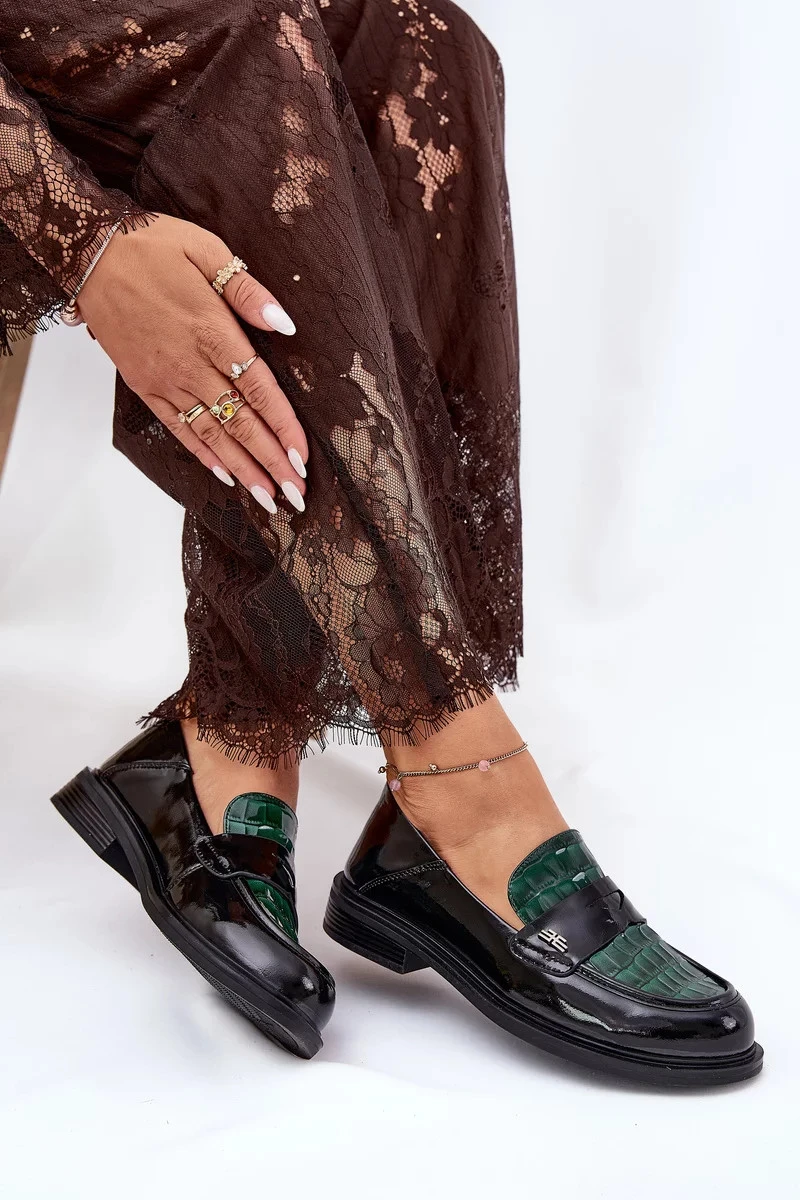 Dámské lakované kožené mokasíny Vinceza – zeleno-černé