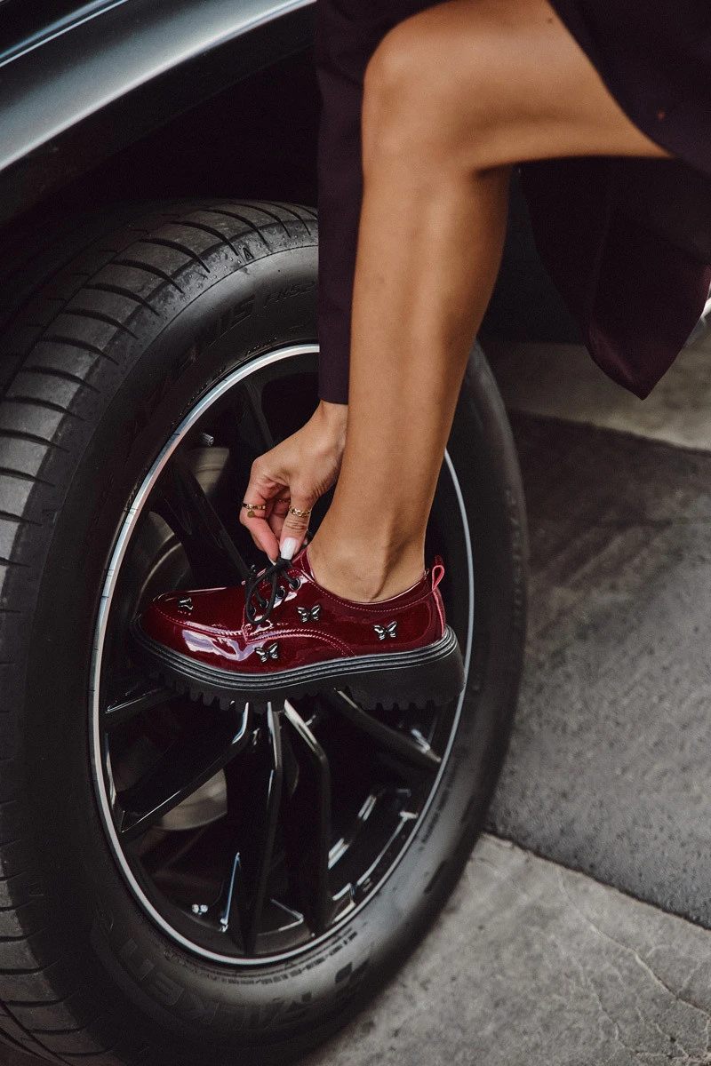 Dámské lakované kožené polobotky s připínacími doplňky Artiker – bordó