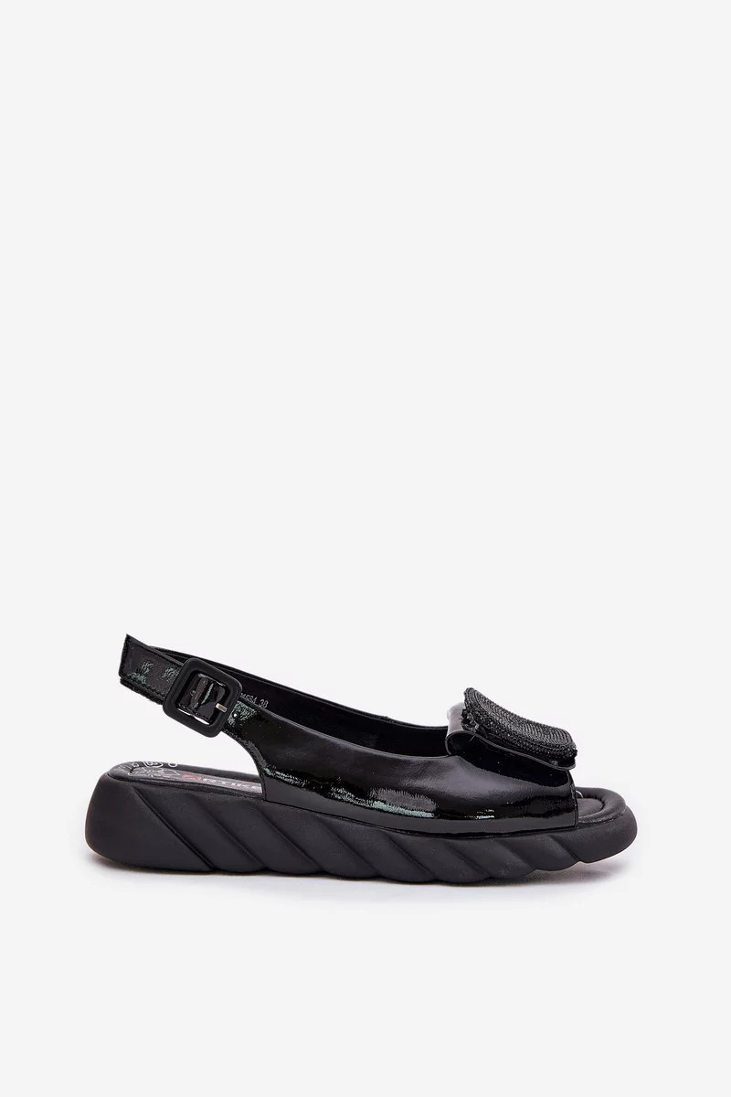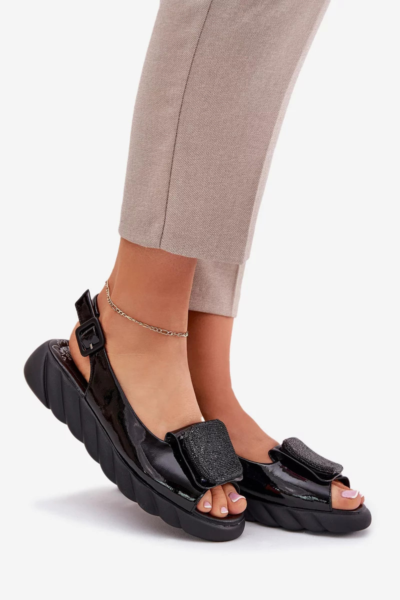 Dámské lakované kožené sandály na klínku s ozdobou - černé Artiker