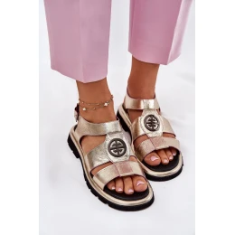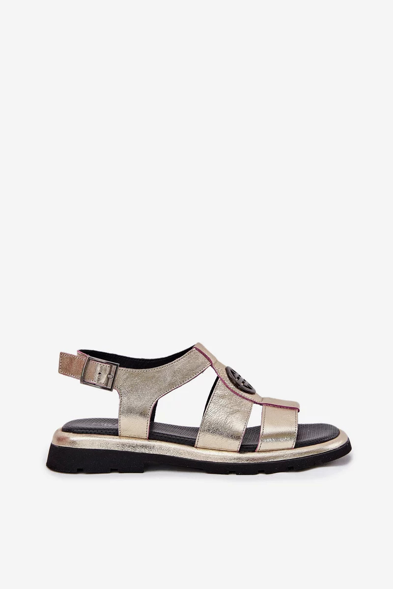 Dámské lakované kožené sandály se zdobeným detailem - zlaté Artiker
