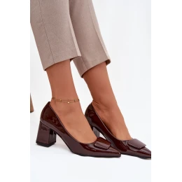 Dámské lakované lodičky na blokovém podpatku s ozdobou Isoline – čokoládové
