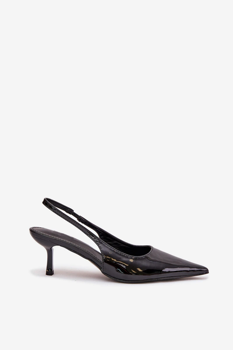 Dámské lakované lodičky na jehlovém podpatku s odkrytou patou Talira – černé
