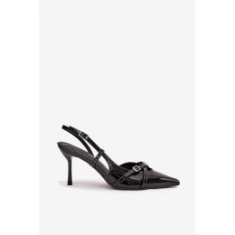Dámské lakované lodičky s odkrytou patou a pásky Ravira – černé