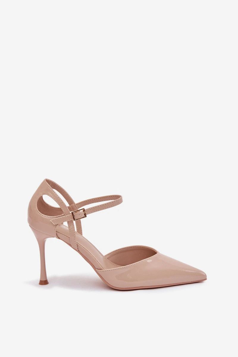 Elegantní dámské lodičky Tarilin z lakované eko kůže v béžovém provedení s páskem přes nárt. Jehlový podpatek dodává ženský a sofistikovaný vzhled, zatímco zapínání pásku zajišťuje pohodlné a pevné nošení. Ideální volba pro slavnostní, společenské i každodenní elegantní outfity.