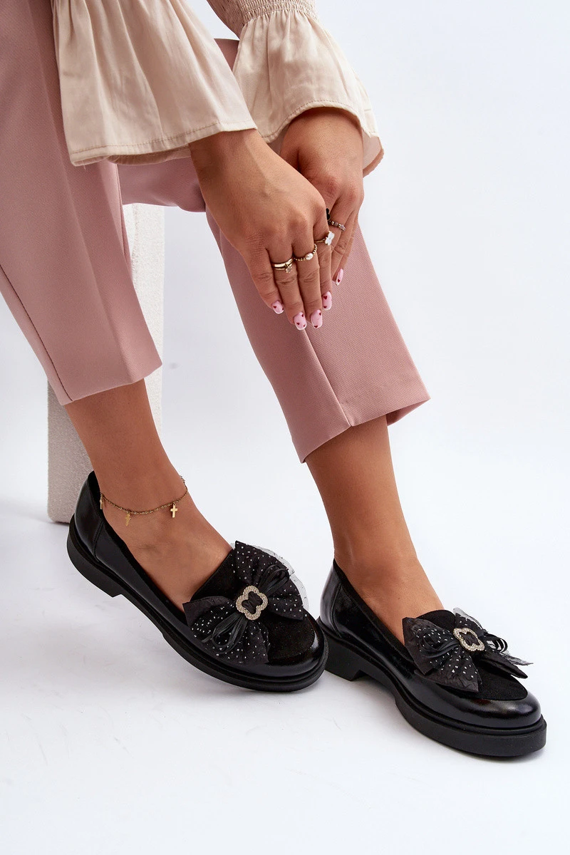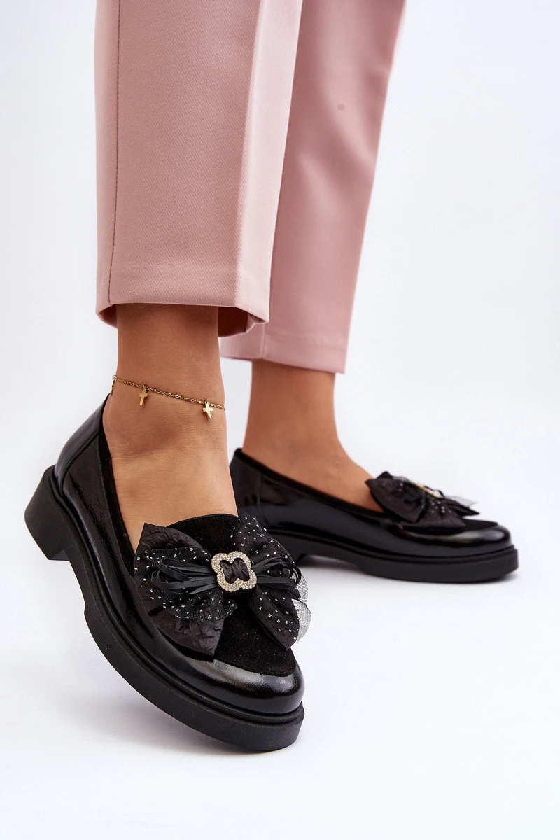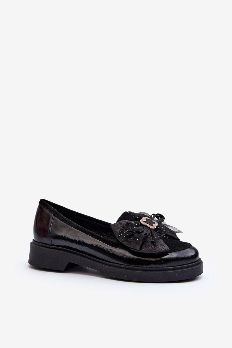 Dámské lakované mokasíny s mašlí model 21648033 černé - Laura Messi