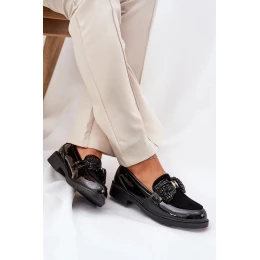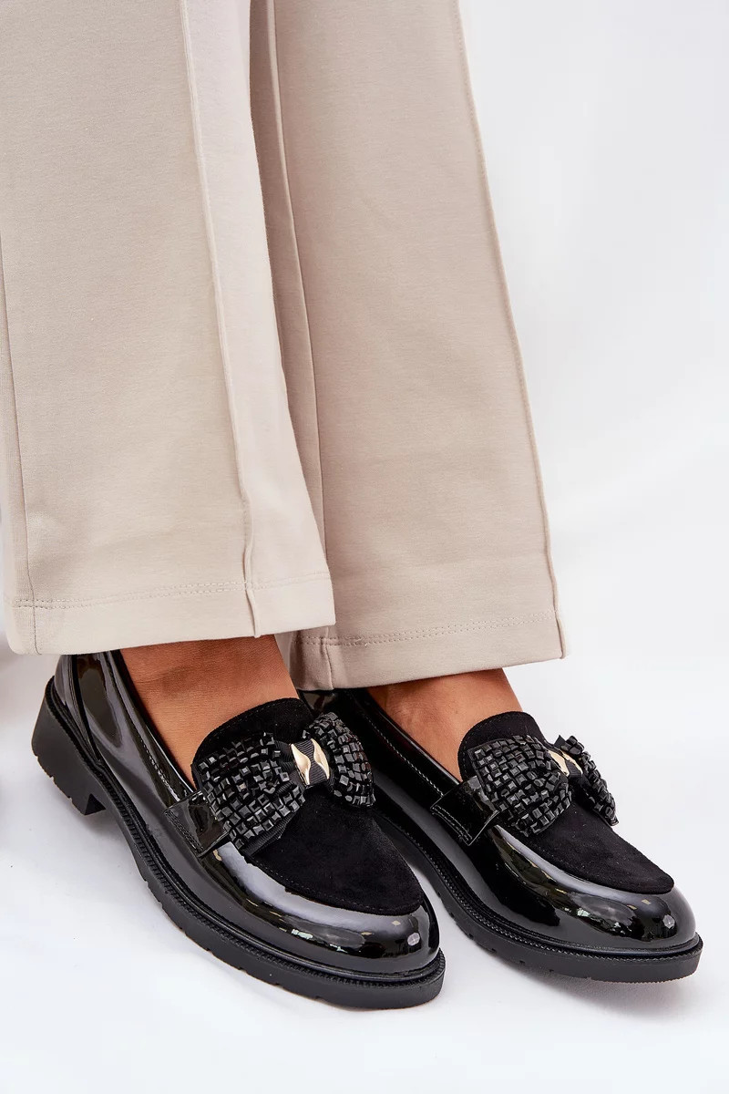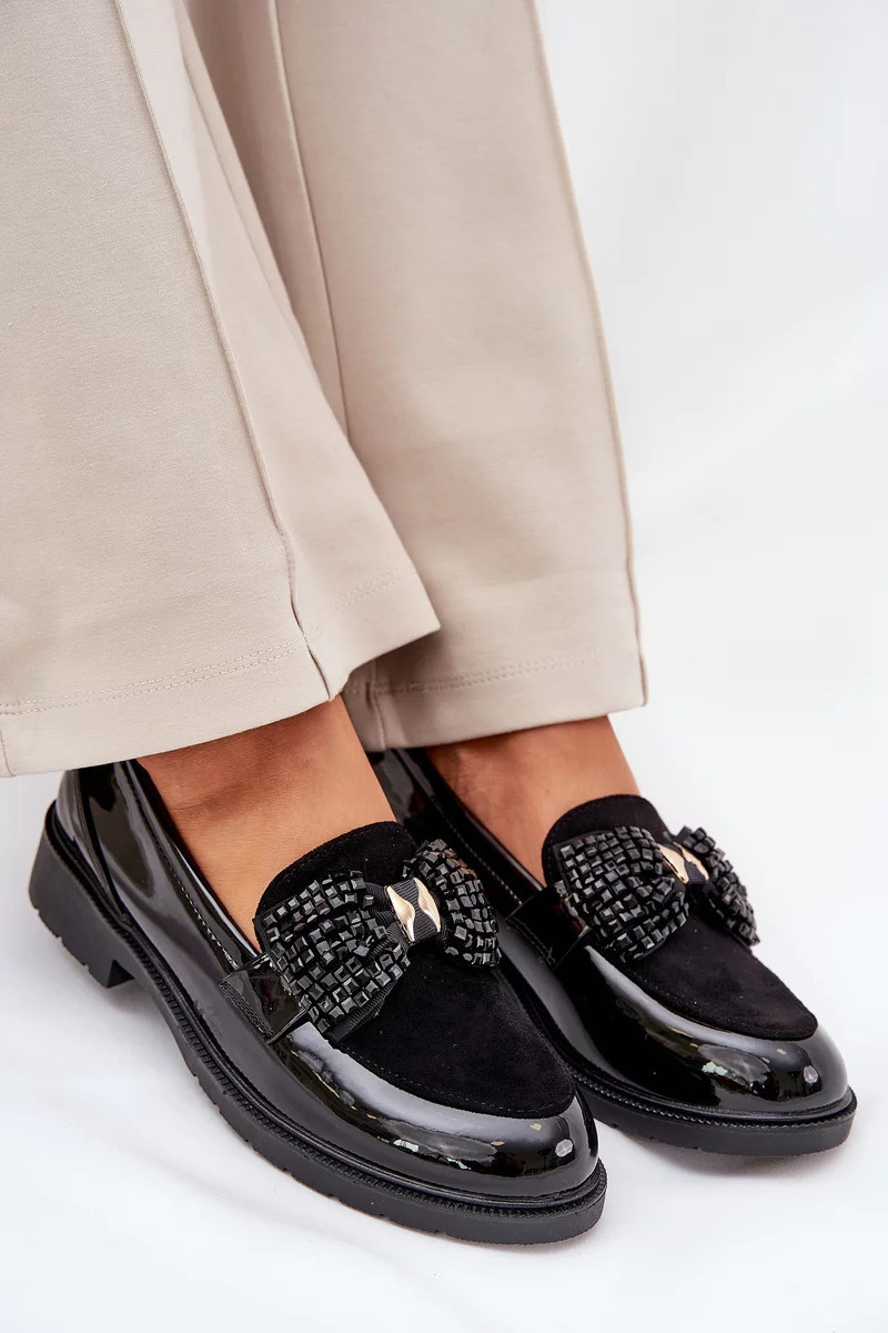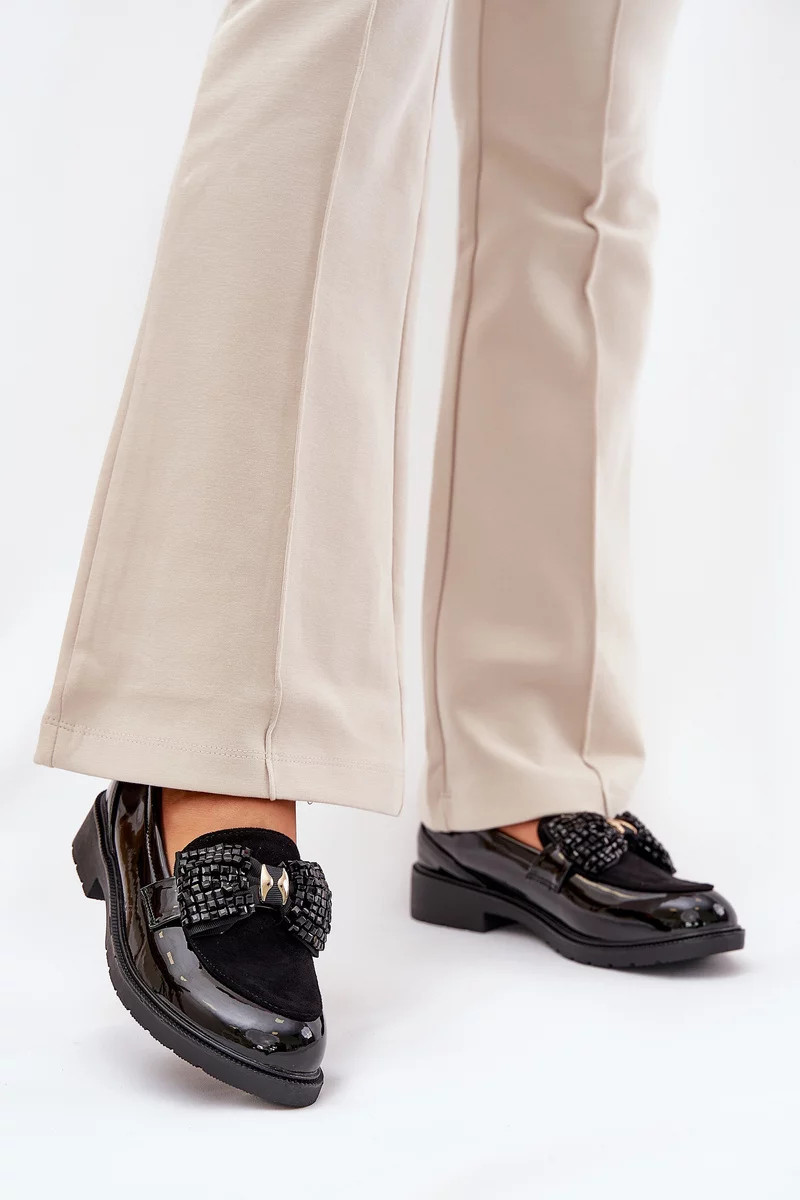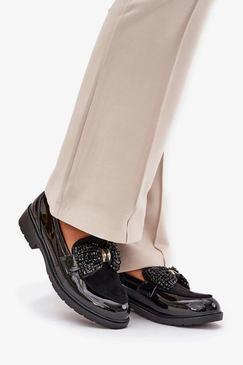 Dámské lakované mokasíny s mašlí S.Barski – černé
