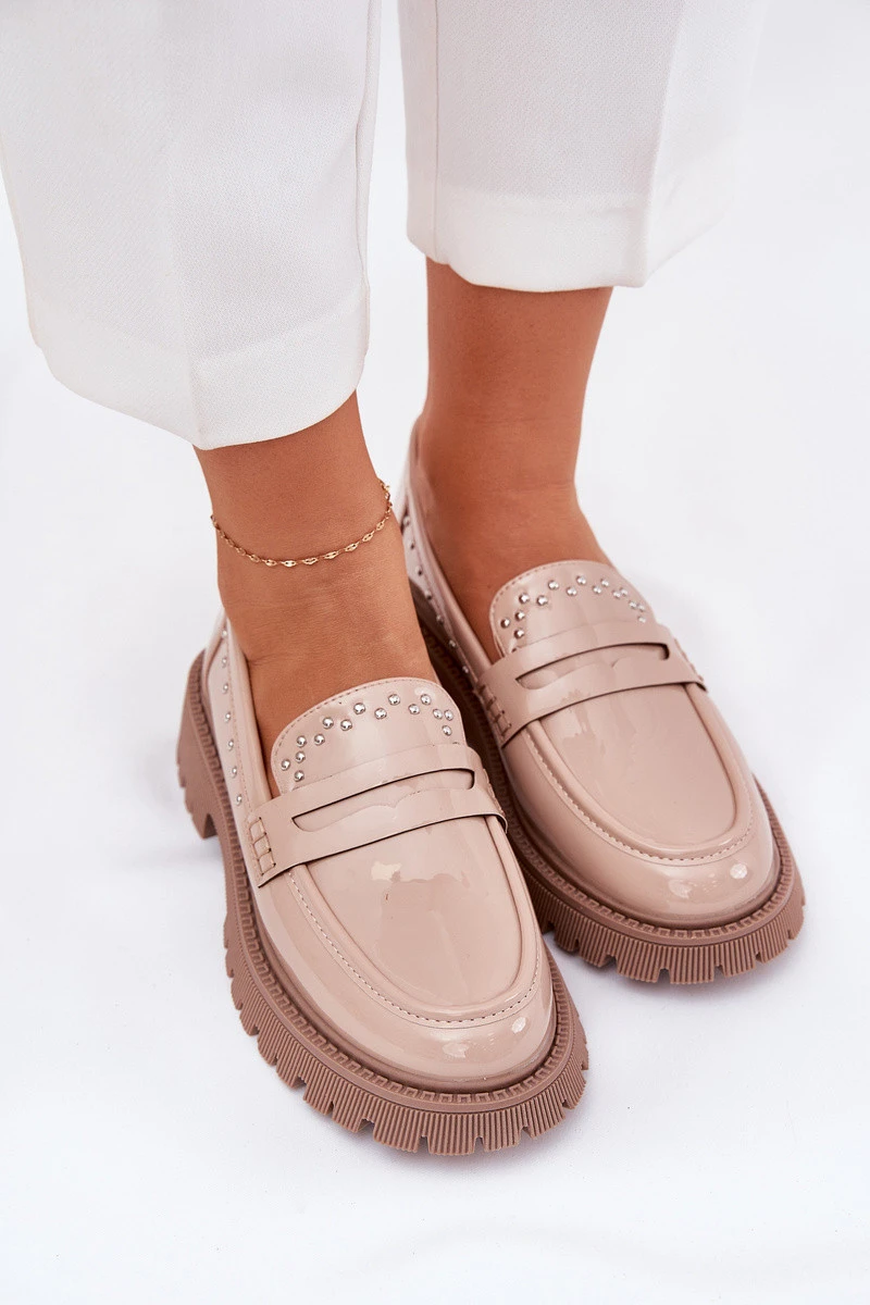 Dámské Lakované Mokasíny Se Zdobením Béžové Nallae