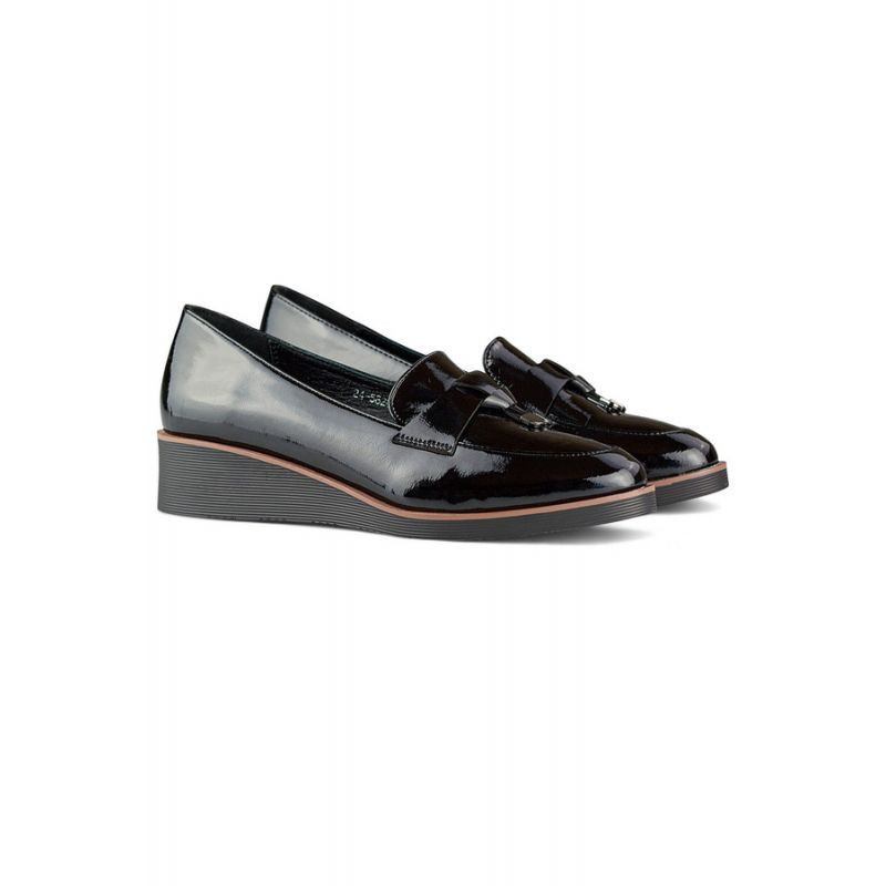 Přidání recenze k Dámské lakované polobotky na podpatku černé 24-58266B