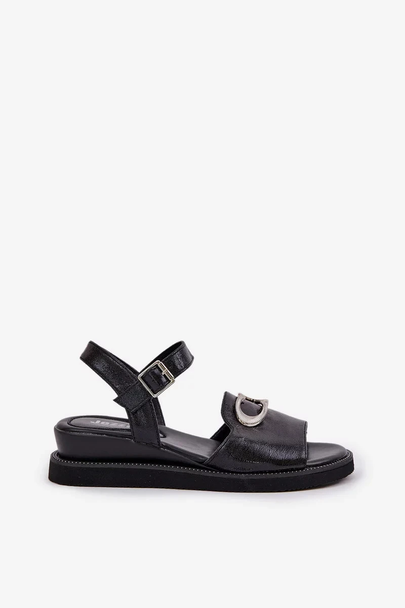 Dámské lakované sandály na klínku s ozdobou Černé Salianes