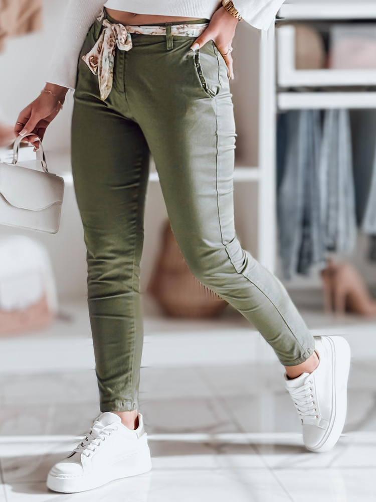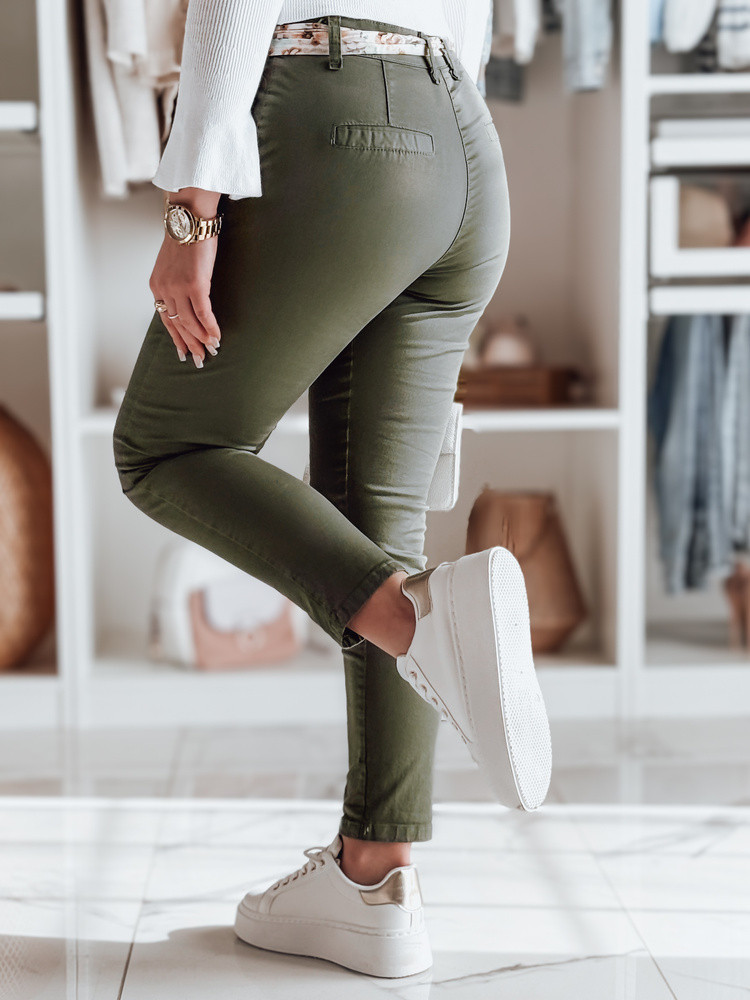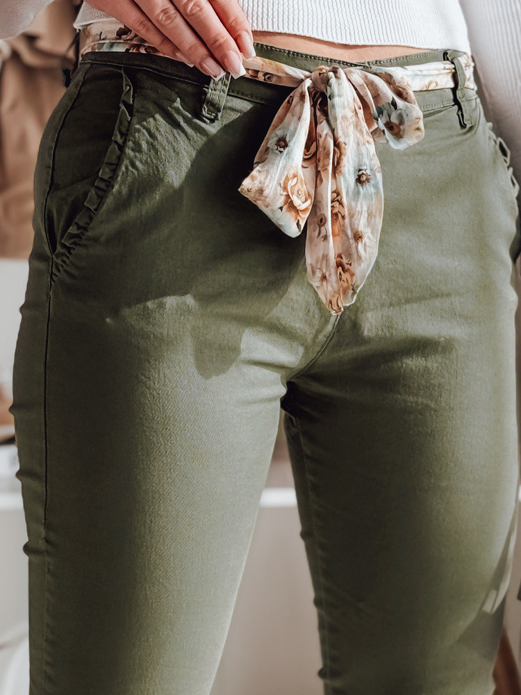Dámské látkové chinos kalhoty s páskem olivové Dstreet model 21986630 - FashionStreet