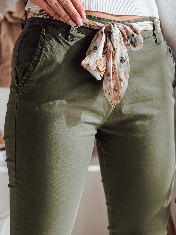 Přidání recenze k Dámské látkové chinos kalhoty s páskem olivové Dstreet model 21986630 - FashionStreet