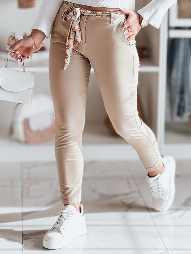 Přidání recenze k Dámské látkové chinos kalhoty s páskem ROSSALI tmavě béžové FashionStreet UY2536