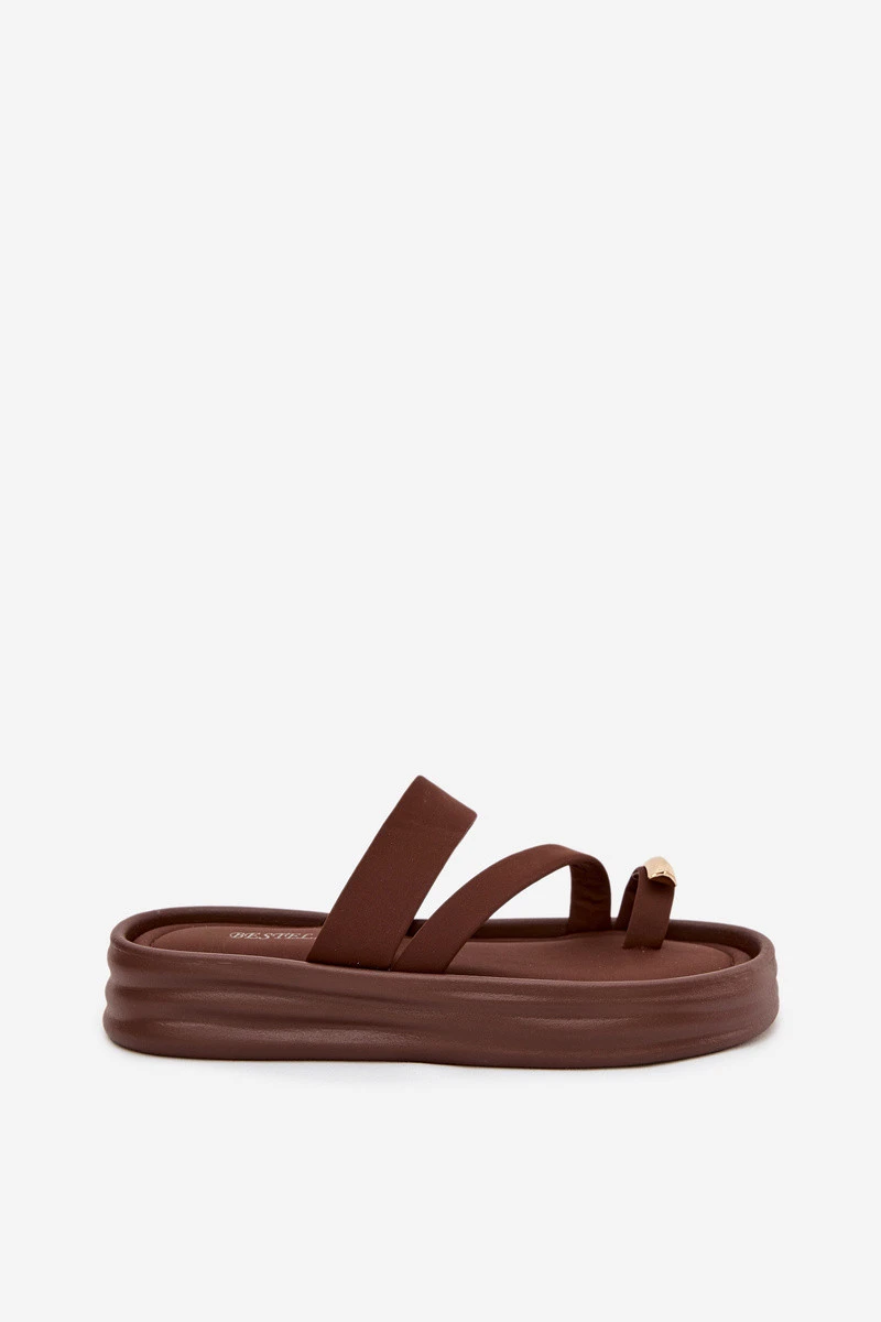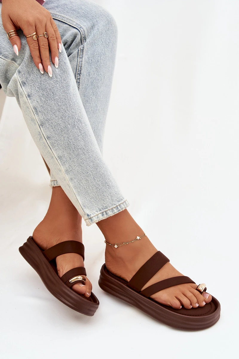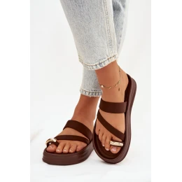 Dámské látkové pantofle s pásky a zlatým detailem čokoládové Farielle