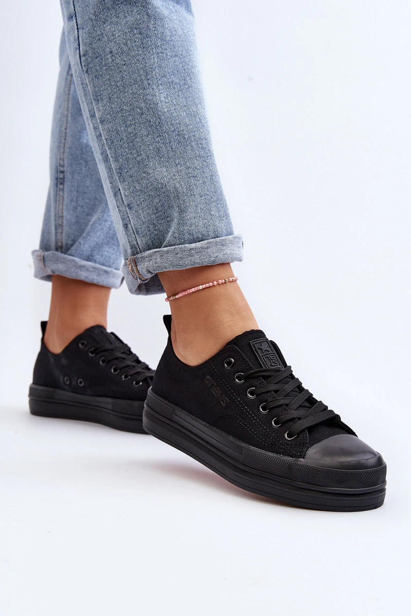Dámské plátěné tenisky s platformou. Podrážka je protiskluzová. Nadčasový model, který byste měla mít ve své skříni! Určitě si je obujete ke spoustě stylizací! Špička byla zesílena pryžovým materiálem. Při výběru velikosti se řiďte tabulkou velikostí.
