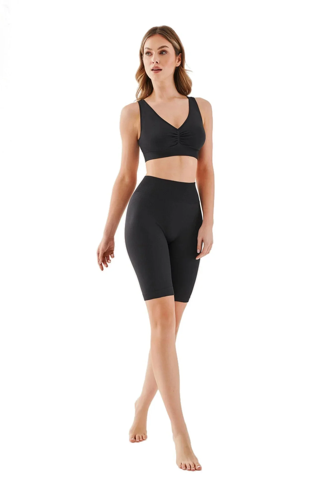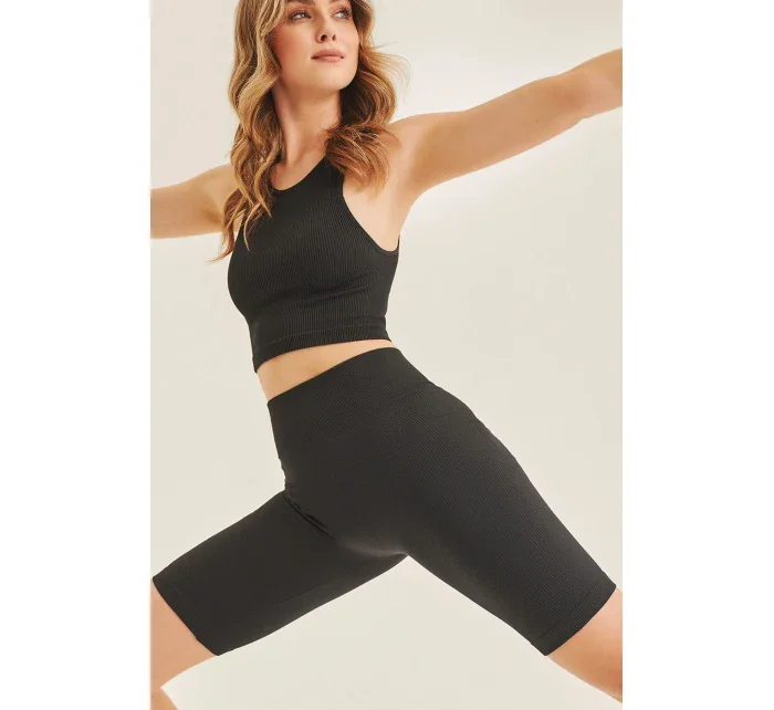 Fitness legíny 1205 Track rib black GABRIELLA - černá barva - z vysoce jakostního žebrovaného mikrovlákna - bezešvé - neprůhledné - opticky zeštíhlí hýždě a stehna - ideální na cyklistiku, fitness