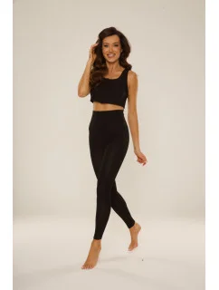 Dámské dlouhé legíny ušité z žebrovaného úpletu s vysokým sedem.