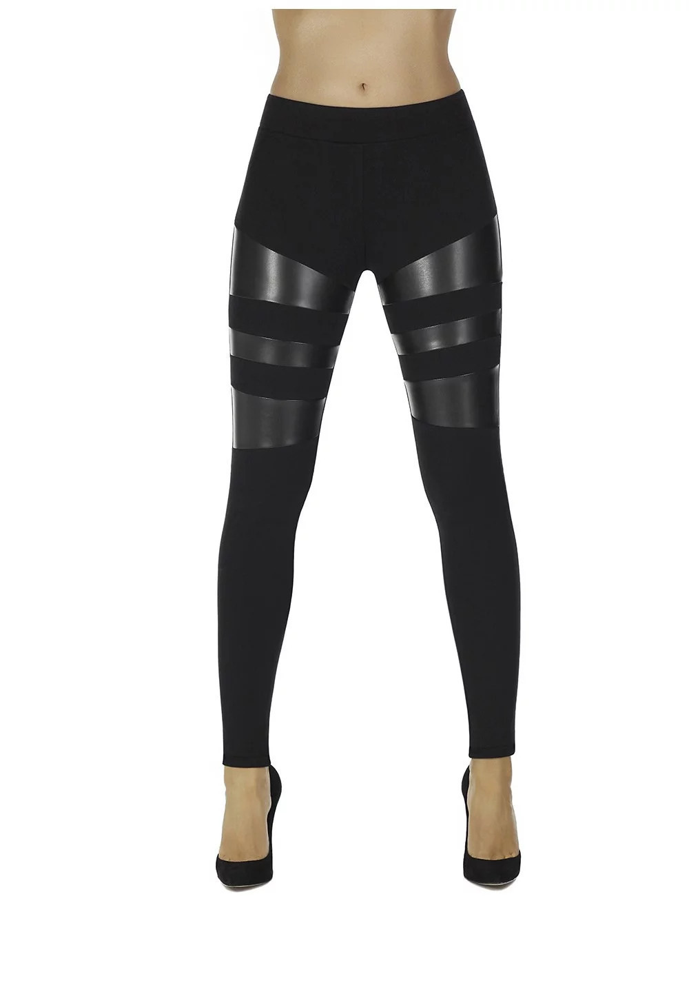 Atraktivní dámské legíny s koženými detaily a s Push-Up efektem.