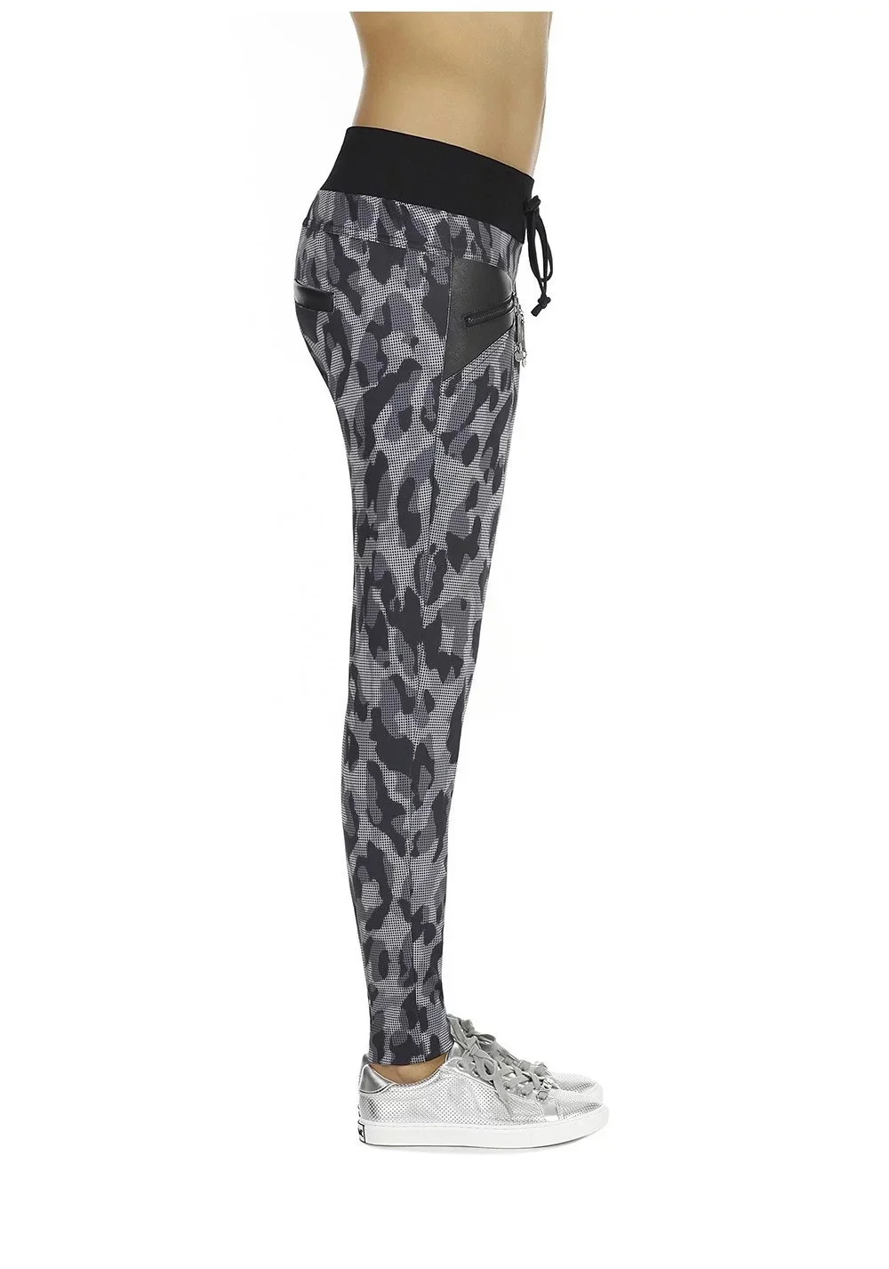 Jsou z příjemného elastického materiálu, krásně modelují postavu, v módním maskáčovém designu. Barva černo-šedá.