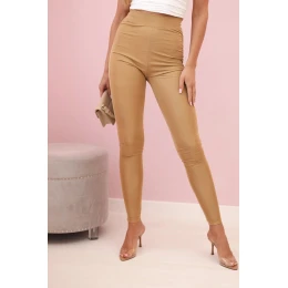 Dámské legíny s vysokým pasem z elastického materiálu camelové