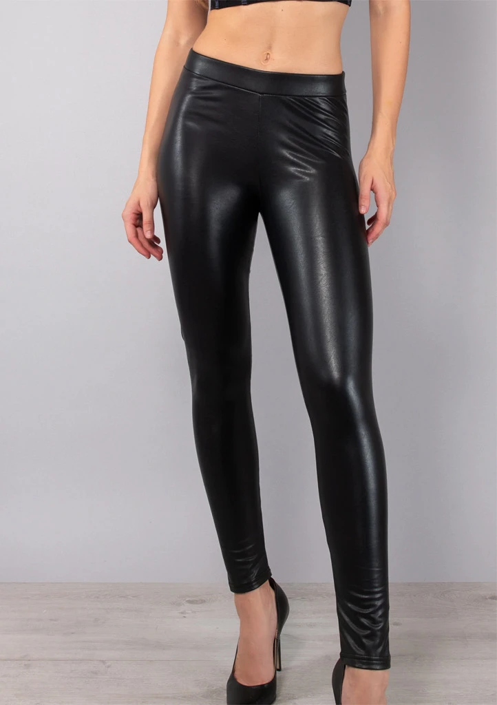 Dámské legíny Siélei v černé barvě s lesklým efektem působí moderně a elegantně. Jsou vyrobené z imitace kůže s povrchovou úpravou z polyuretanu, která se krásně přizpůsobí postavě a zvýrazní její tvary. Vnitřní strana je podšitá příjemnou látkou, která zvyšuje komfort při nošení a brání nepříjemnému lepení na kůži. Legíny mají hladký pas bez zapínání a díky elastickému provedení se snadno oblékají. Skvěle se kombinují s košilí, svetrem nebo sakem pro stylový každodenní outfit.