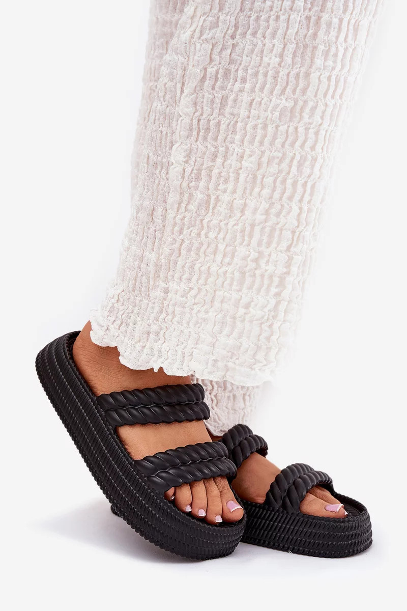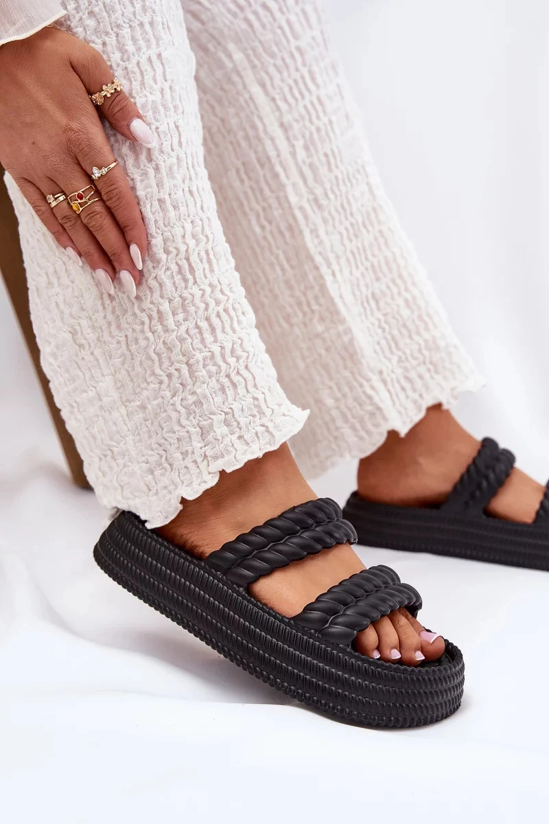 Dámské lehké pěnové pantofle na platformě S.Barski – černé