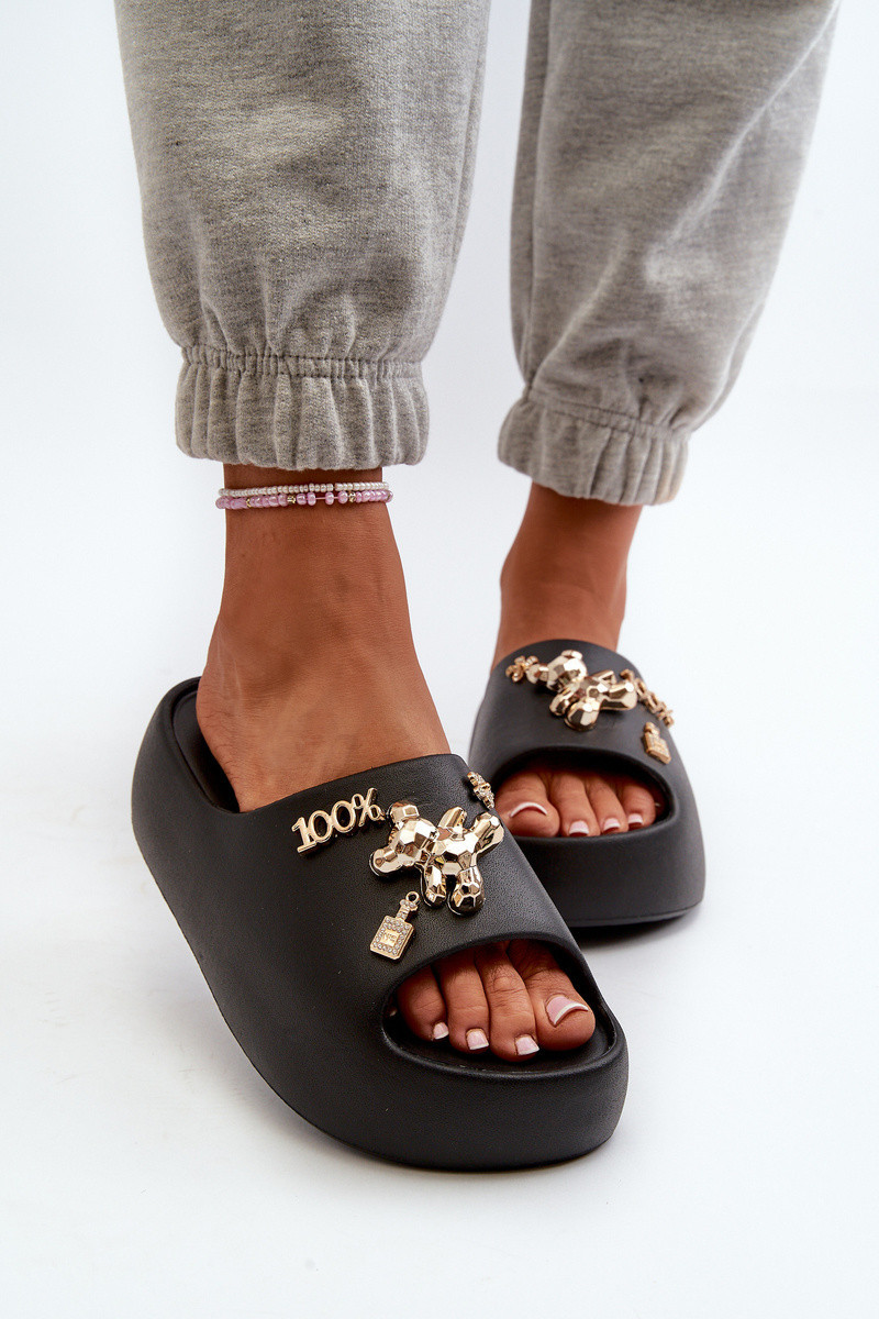 Dámské lehké pěnové žabky s ozdobami Černé Orchia