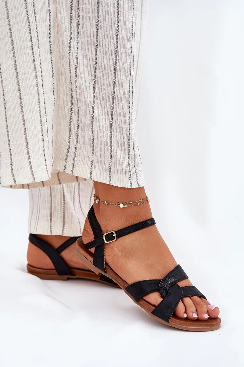 Elegantní dámské sandály S.Barski v lesklém černém provedení kombinují pohodlí s módním vzhledem. Plochá konstrukce zajišťuje komfortní a stabilní došlap, zatímco lesklý efekt dodává obuvi stylový akcent, který pozvedne každodenní letní outfit. Sandály jsou univerzální volbou pro teplé dny, kdy chcete být pohodlně i elegantně oblečená.