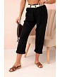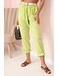 Dámské lněné kalhoty s bavlnou a páskem kiwi