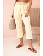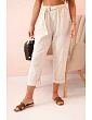 Lehké a vzdušné dámské kalhoty z přírodní směsi lnu a bavlny jsou ideální volbou na teplejší dny. Model má elastický pas, který se skvěle přizpůsobí postavě, a součástí je také stylový pásek, který dodává outfitu charakter. Nohavice jsou lehce ohrnuté, což podtrhuje ležérní letní styl. Kalhoty jsou mimořádně pohodlné a praktické – hodí se jak pro každodenní, tak i elegantnější kombinace.