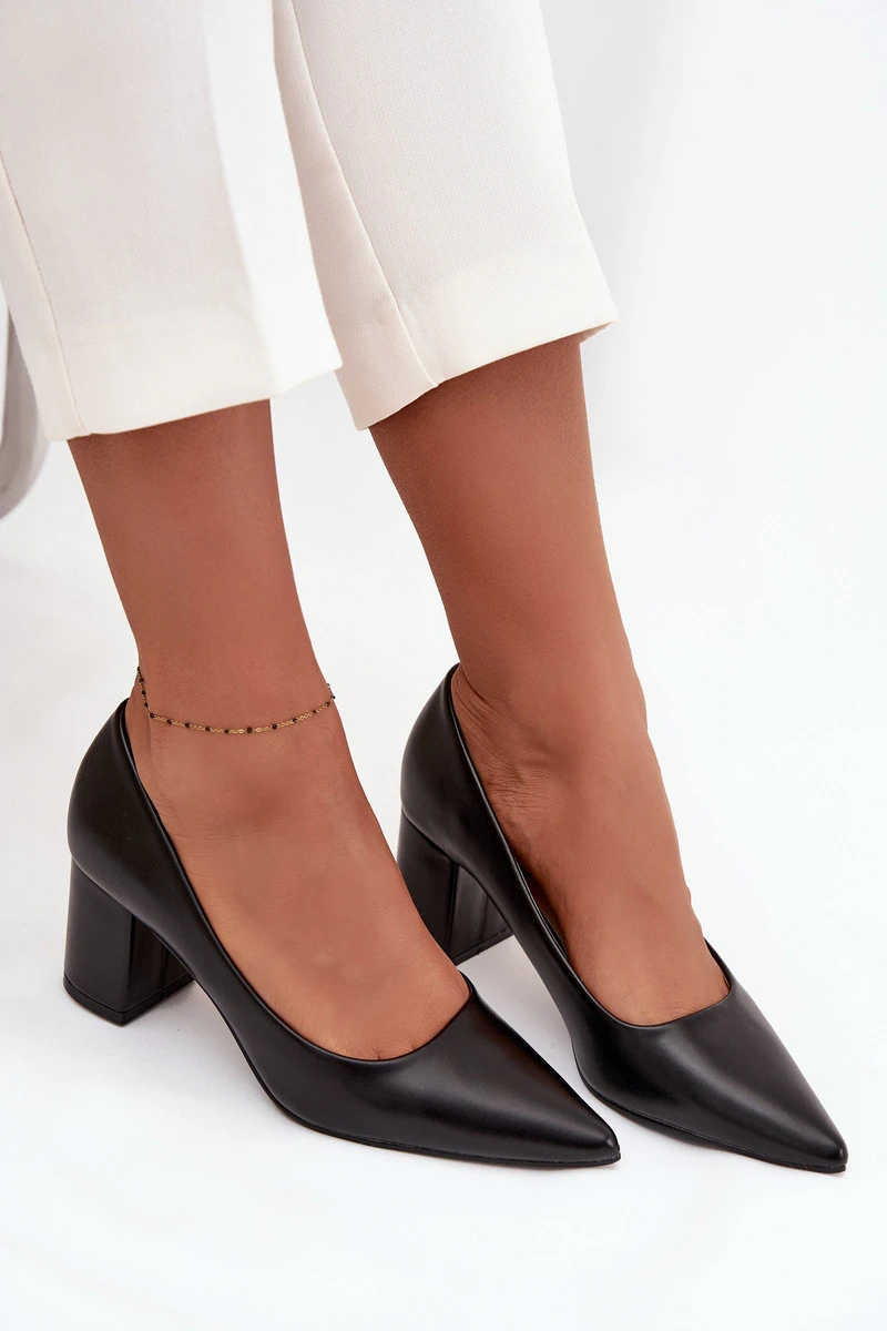 Dámské lodičky na blokovém podpatku se špičatou špičkou Ryvessa – černé