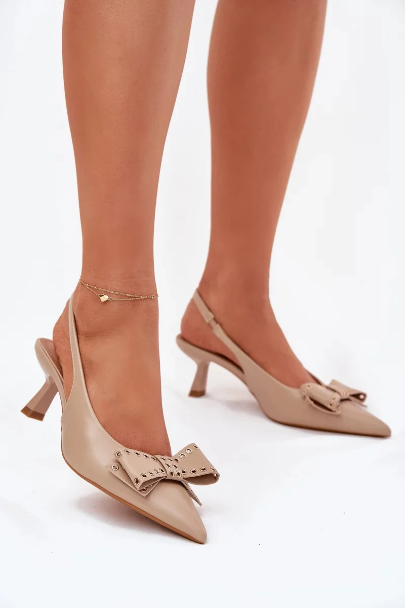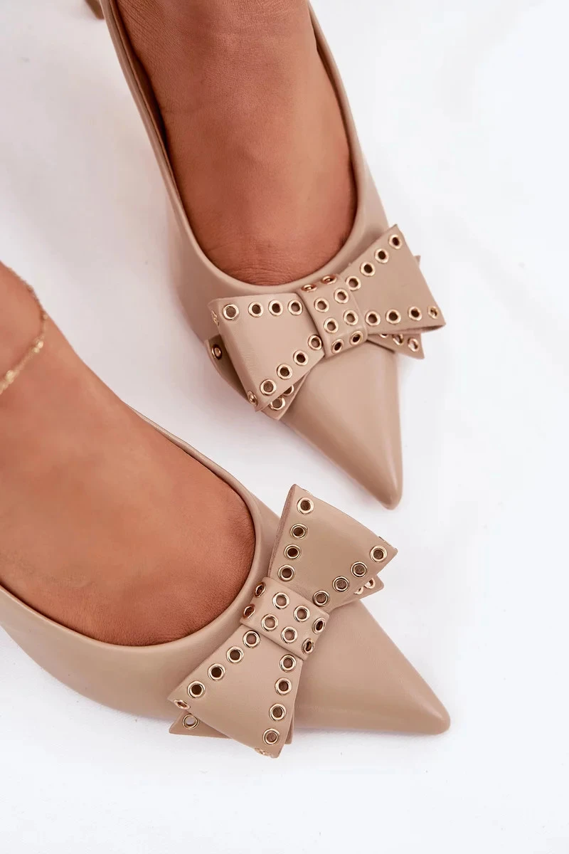 Dámské lodičky na jehlovém podpatku s mašlí Folesca – béžové