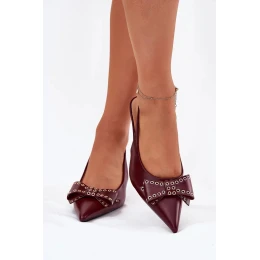 Dámské lodičky na jehlovém podpatku s mašlí Folesca – bordó