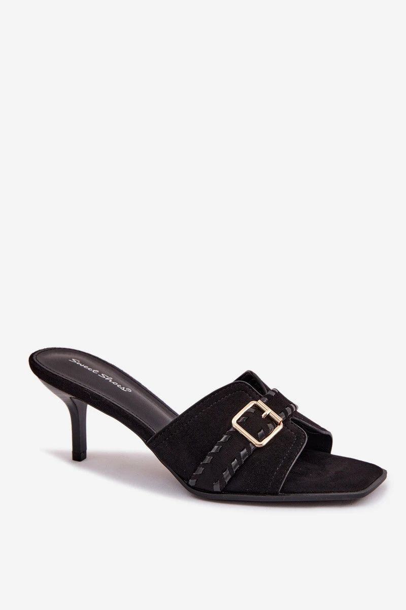 Dámské lodičky na jehlovém podpatku s páskem a zlatým sponou Černé model 22038455 - Boto