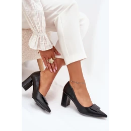 Dámské lodičky z eko kůže, umístěné na sloupkovém podpatku, kombinují eleganci s pohodlím.