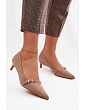 Dámské lodičky vyrobené z ekologického semiše jsou stylovým spojení elegance a pohodlí. Model má špičaté nosy, které zdůrazňují štíhlou linii boty a ženský charakter. Nízký podpatek zajišťuje pohodlí při chůzi, takže jsou vhodné pro každodenní použití. Přední část zdobí nastavitelné pásky s přezkou, které plní dekorační funkci a dodávají celku módní akcent. Tento univerzální obuv je ideální do kancelářského stylu i elegantních outfitů na různé příležitosti. Při výběru velikosti se řiďte tabulkou velikostí.