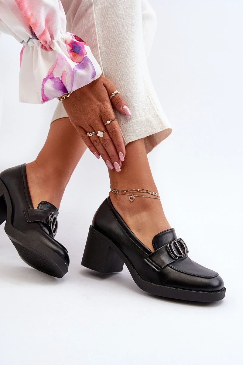 Dámské lodičky na podpatku s ozdobou černé Nedarea