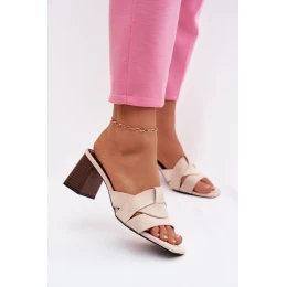 Dámské lodičky na podpatku s pásky Eko semiš Béžové model 21956101 - Boto