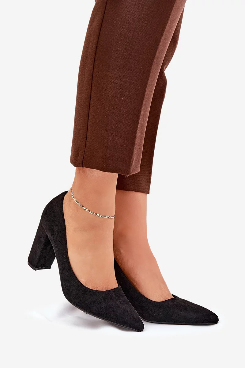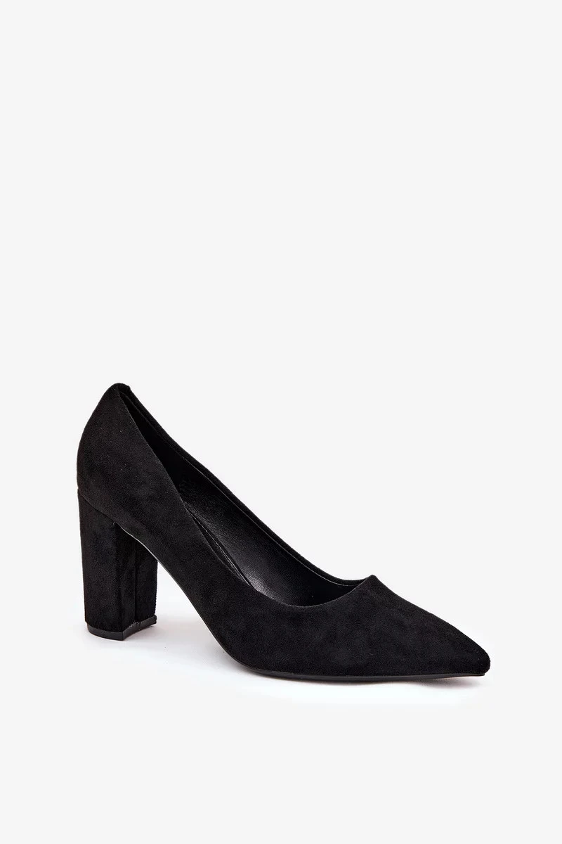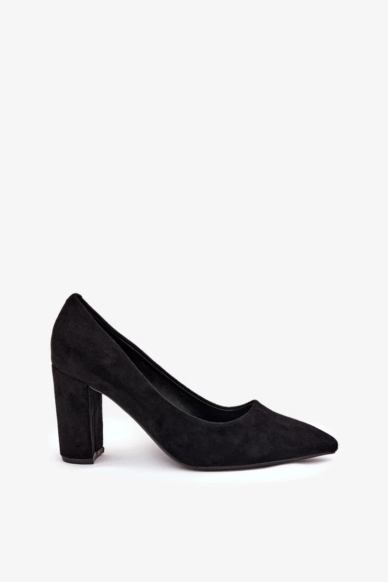 Dámské lodičky na podpatku z eko semiše Ellinoria – černé