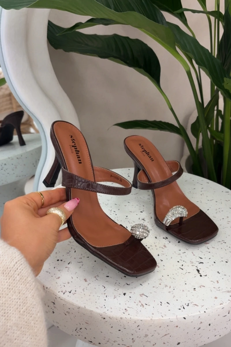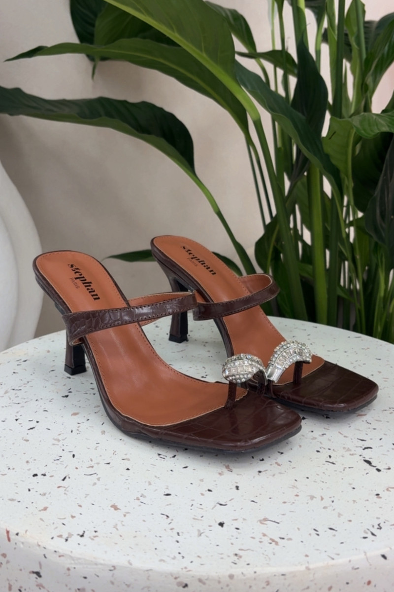 Elegantní dámské sandály z eko kůže jsou výjimečnou volbou pro ženy, které ocení styl a ženský vzhled. Tenký podpatek typu jehlový podtrhuje siluetu, dodává lehkost a eleganci. Pásek na nártu zajišťuje stabilitu a ozdobný, šperkový detail na prstu přitahuje pozornost a dodává celku luxusní charakter. Tento model je ideální na večerní výlety, oslavy a speciální příležitosti. Při výběru velikosti se řiďte tabulkou velikostí.